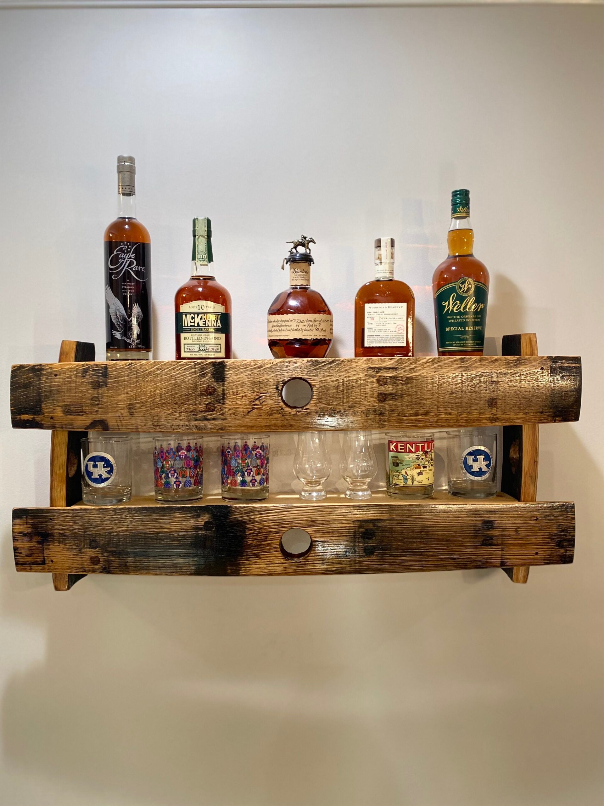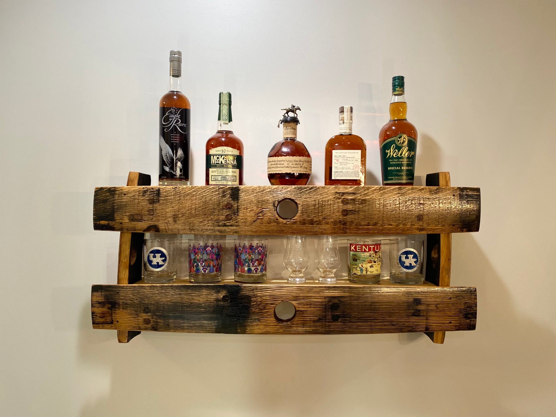 Showcase your bourbon collection and appreciate it at eye level with our stave hanging shelf. Built with sturdiness in mind, our hanging hardware can more than handle the heaviest collection in style.