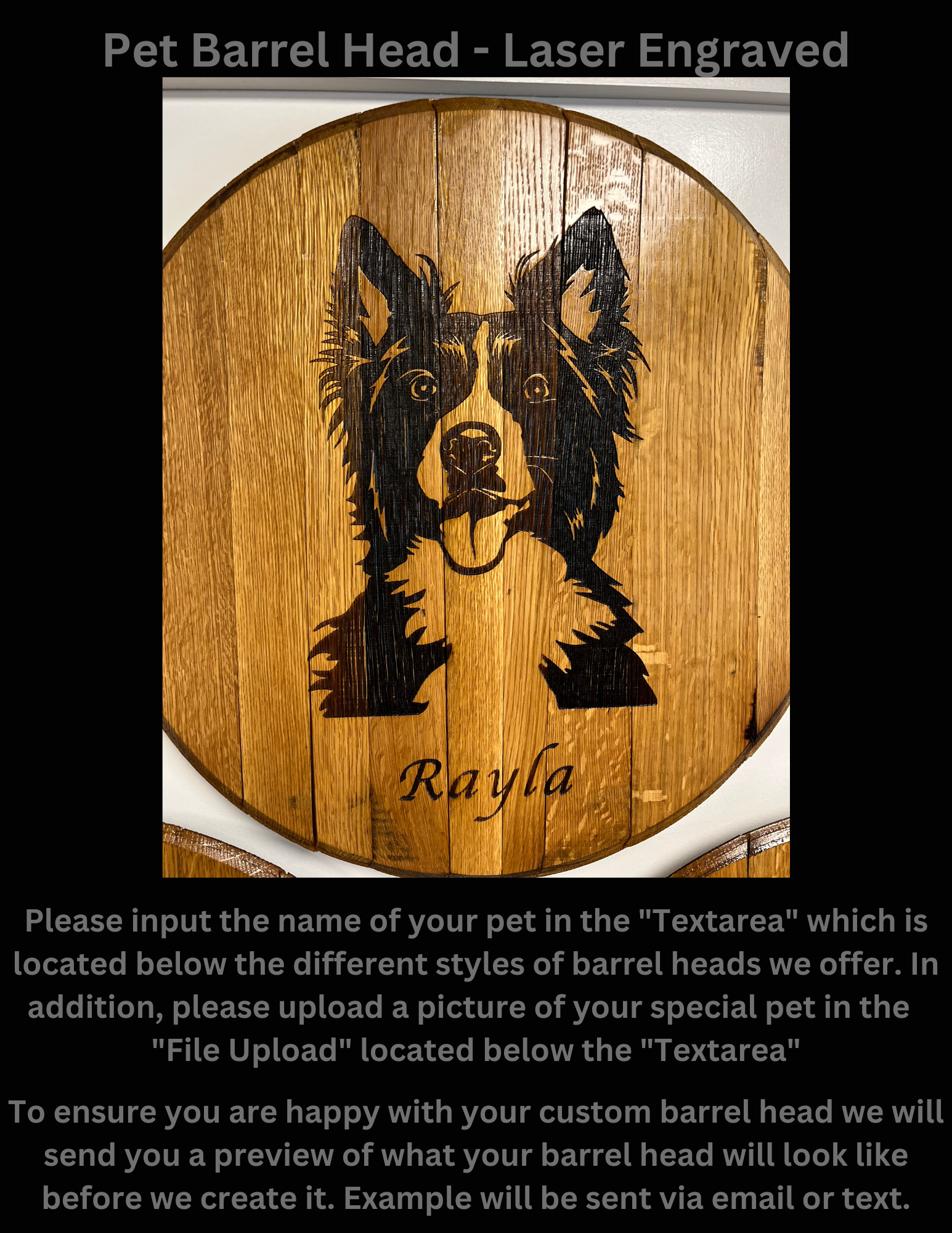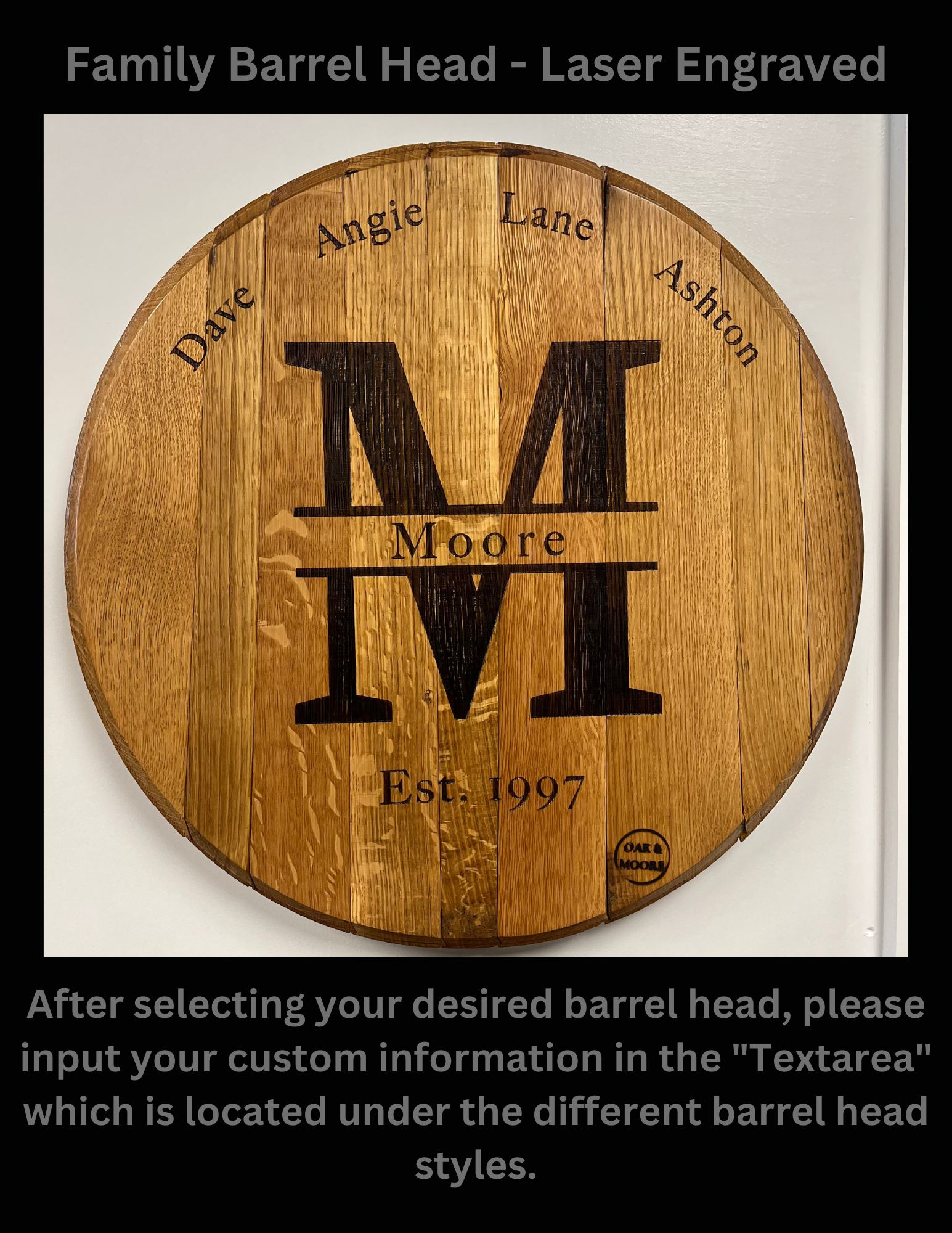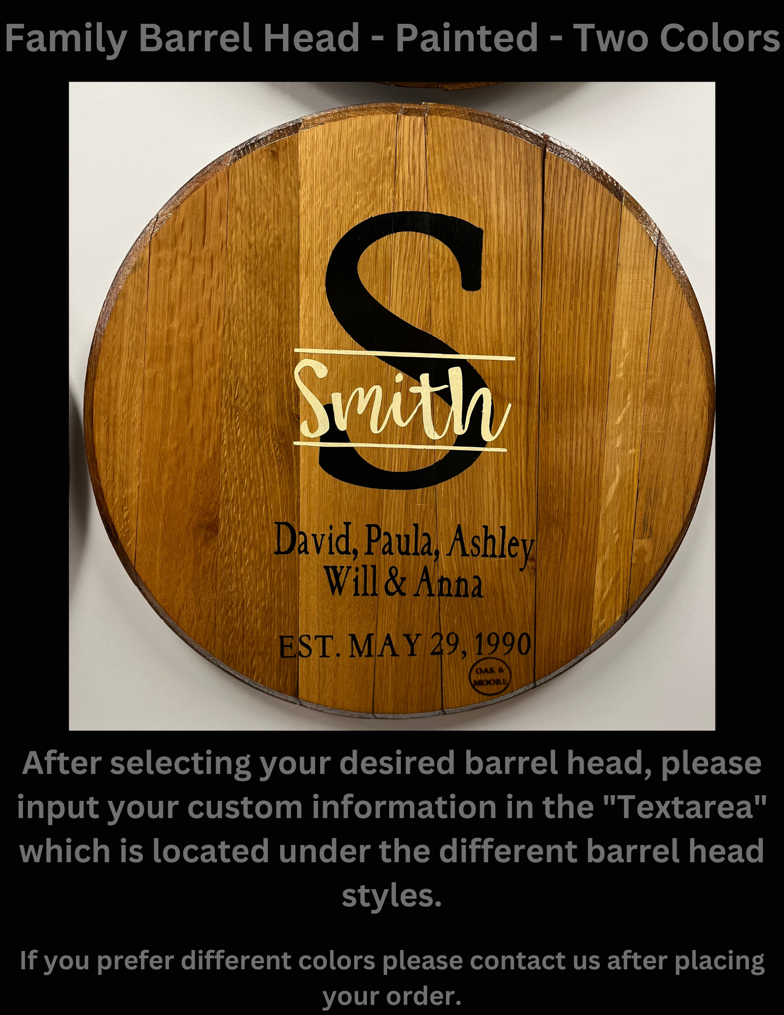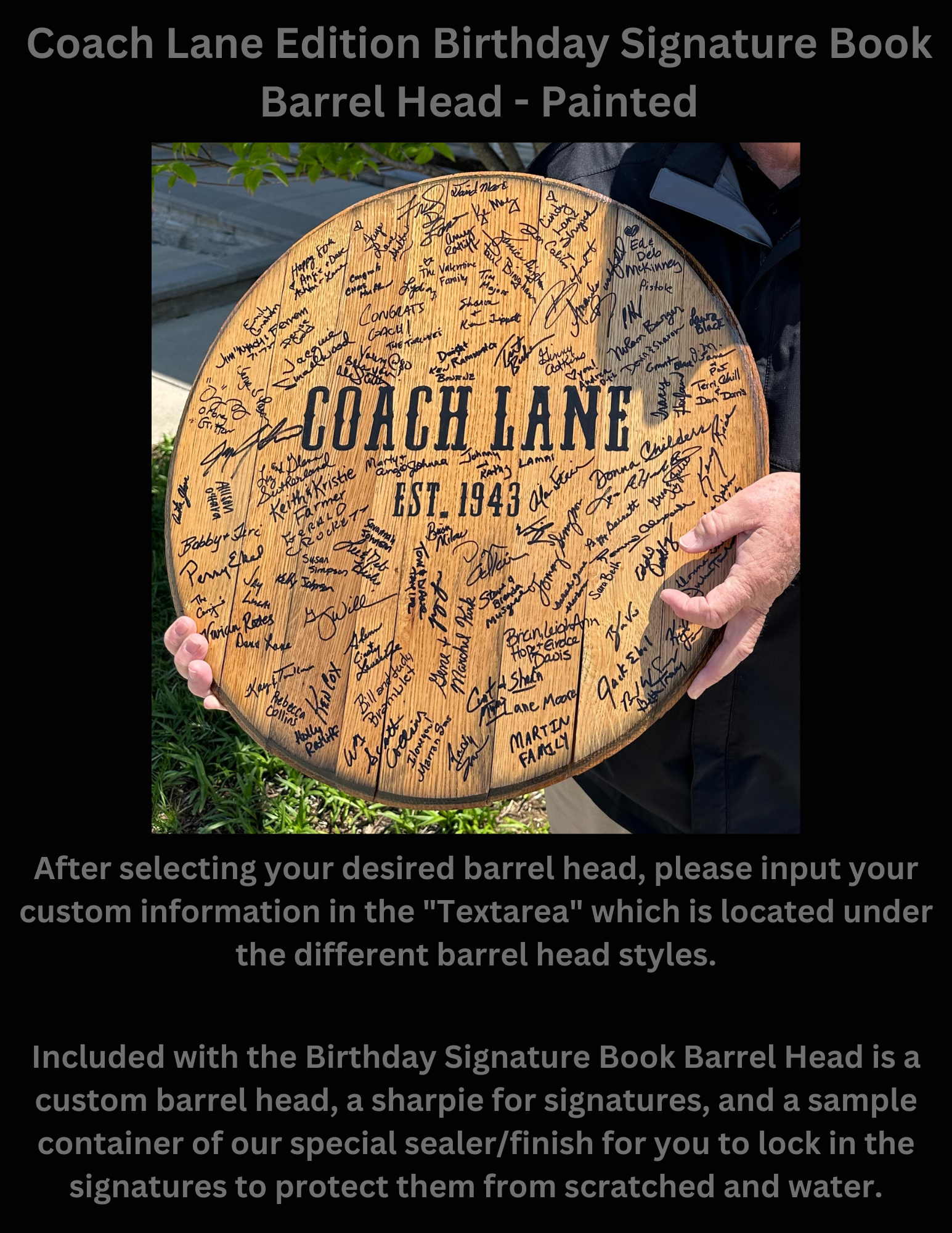 Have a loved one getting married? We have you covered. Our barrel heads are dried and humidity checked to ensure your product looks the same as you bought it for years to come.